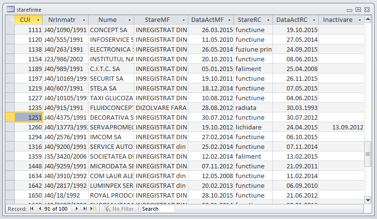 - where the "Inactivation" column is filled in, the company is declared inactive by ANAF from that date;